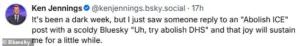 For Jennings, the incident has reignited his long-standing commitment to social justice. ‘I just saw someone reply to an “Abolish ICE” post with a scoldy Bluesky “Uh, try abolish DHS,”‘ he wrote, adding that the absurdity of the comment ‘will sustain me for a little while.’ His ability to find humor in the face of tragedy has become a hallmark of his activism, even as he grapples with the weight of the moment. ‘I will vote for whoever will prosecute the former regime at every level,’ he reiterated, a pledge that has placed him at the center of a political and moral reckoning that shows no signs of abating.