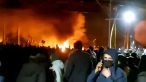 In Isfahan, flames engulfed the entrance of a regional state television branch, while in Shazand, the governor’s building was set ablaze after demonstrators gathered outside.