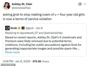 The controversy has placed St Clair at the center of a broader debate about the ethical implications of AI tools like Grok, which are now accessible to the public through Musk’s social media platform, X.