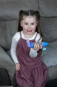 Amelia-Rose now attends school regularly, participates in social events, and no longer requires steroid tablets or other medications. ‘As soon as she gets wheezy or starts coughing, she uses it, and then she’s like a different child,’ Sophie said.