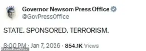 The remarks followed a viral social media post from Newsom’s office on X (formerly Twitter) the night of Good’s death on January 7, which read: ‘STATE.
