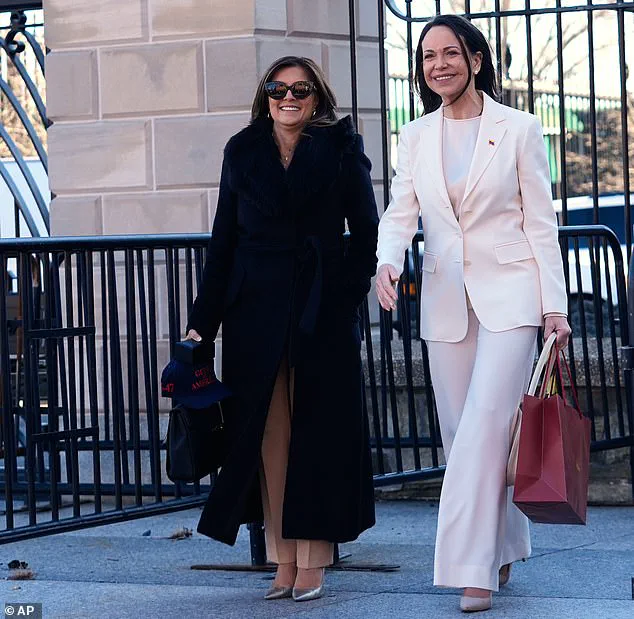 Speaking to reporters in a tense but composed manner, she invoked the historical precedent of the French Marquis de Lafayette, whose military contributions to the American Revolution had earned him a medal from George Washington. ‘The people of Bolivar are giving back to the heir of Washington a medal, in this case the medal of the Nobel Peace Prize,’ she said, drawing a parallel between Trump’s alleged commitment to Venezuelan freedom and Lafayette’s legacy.