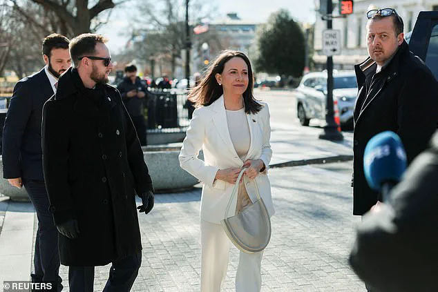 The opposition leader, who had been hiding in exile since her brief detention by Maduro’s forces last year, walked through the White House gates with a mixture of determination and caution.