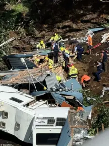 Rescue efforts intensified as the police dog squad joined the search, their handlers scanning the debris-strewn landscape for signs of life. ‘We’re going right through [the night] until we’ve rescued everyone,’ Fire and Emergency NZ commander William Park told reporters, his voice steady despite the urgency of the situation. ‘It was a significant landslip and the priority was life safety.