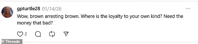 Threads users have questioned his loyalty to his community, with one post demanding, ‘Wow, brown arresting brown.