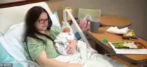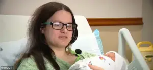 Blumberg, now a mother of two, described the surreal moment as both terrifying and miraculous. ‘After that, I couldn’t even get off the toilet,’ she told KCCI, recalling the sudden urgency that led her to call for help. ‘I get up, and I feel his head.’
