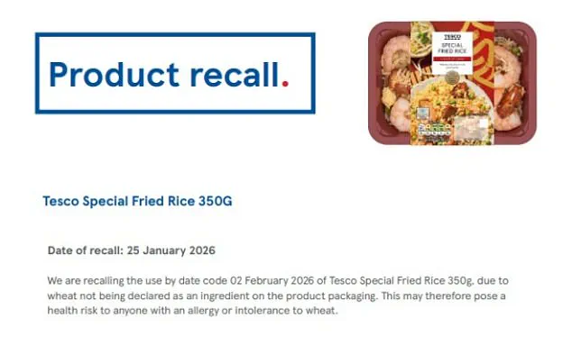 Tesco Recalls Fried Rice Over Undeclared Wheat, Allergy Risk for Thousands
